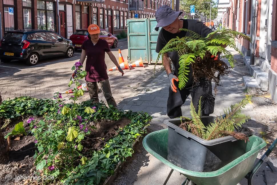 Het begon met een idee van bewoners René Broeders en Herman Peeren. Zij wilden de Ooievaarstraat in het Oude Noorden opfrissen en groener maken. René: “We hadden het erover dat de straat wel een opknapbeurt kon gebruiken. Toen zijn we naar wijkbeheerder Ricardo gestapt.”